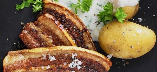 We hebben ook een smakelijk avondmenu, waarbij we knapperig geroosterd varkensvlees met peterseliesaus serveren.